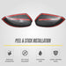 Installation is quick and requires no tools or mirror disassembly. Each overlay comes pre-applied with heavy-duty automotive adhesive tape for a strong, secure hold. Simply clean the existing mirror cap, peel away the red backing, and press the cover firmly into place to create a tight, rattle-free fit.